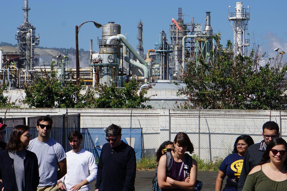 Banner photo: UCLA Law students and faculty participated in a toxic tour of Wilmington, CA, a predominantly Latinx neighborhood surrounded by the Port of Los Angeles, heavy industry, and an oil field in 2019. (Credit: Emmett Institute/flickr)