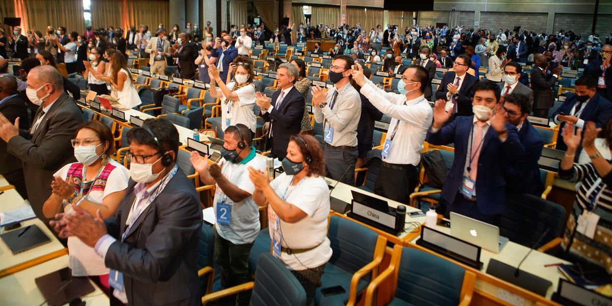 Banner photo: Applause as the resolution on plastic is passed in March 2022. (Credit: UNEP)