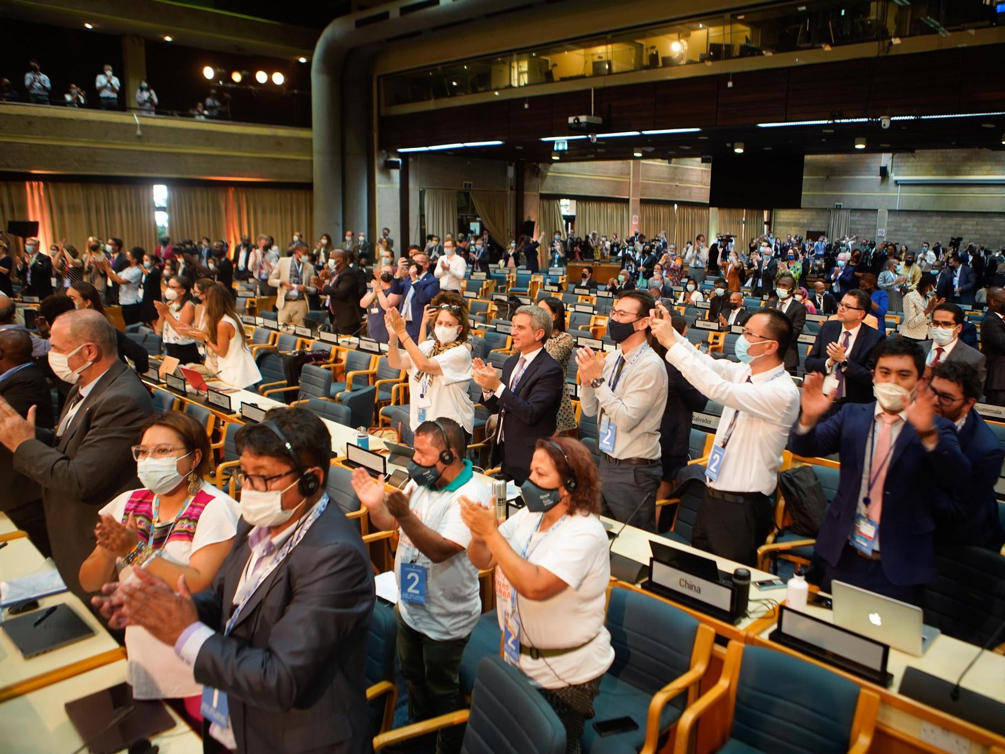 Banner photo: Applause as the resolution on plastic is passed in March 2022. (Credit: UNEP)