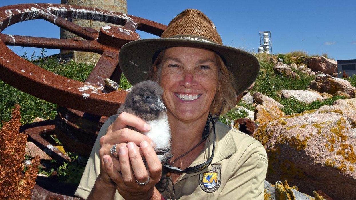 The title of supervisory wildlife biologist for the United States Fish and Wildlife Service does little justice to Linda Welch (pictured above). In practice, she is the housing and unusual development secretary for seabirds on Maine’s Petit Manan Island.