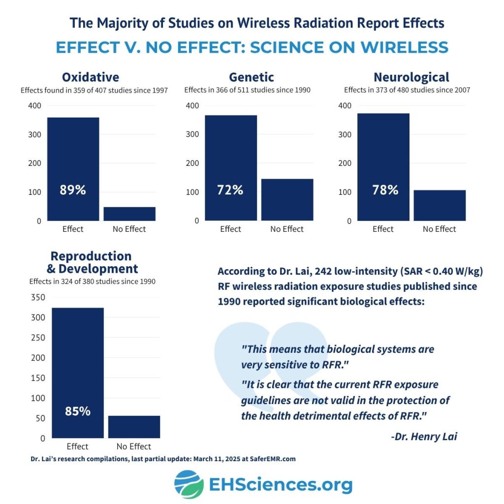 There is increasing scientific evidence reporting health impacts from the electromagnetic fields (EMFs) emitted by cell phones, cell towers, powerlines, wireless devices, and other sources of artificially produced non-ionizing EMFs. Studies have found oxidative stress, genetic damage, and impacts to neurological, reproductive, endocrine and immune system health.