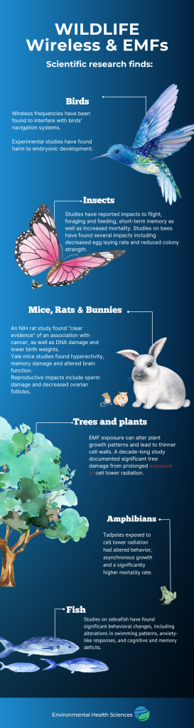 Download our factsheet on wildlife and wireless radiation. This PDF is designed to be emailed with hyperlinks to scientific research in the text. We also have an infographic to share on social media at this link.